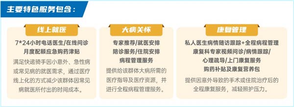 线上就医方面,“骑士保3.0”提供电话医生每天24小时在线问诊服务,减少客户因常见病就医所付出的时间成本,同时还为客户提供每月应急购药津贴。
