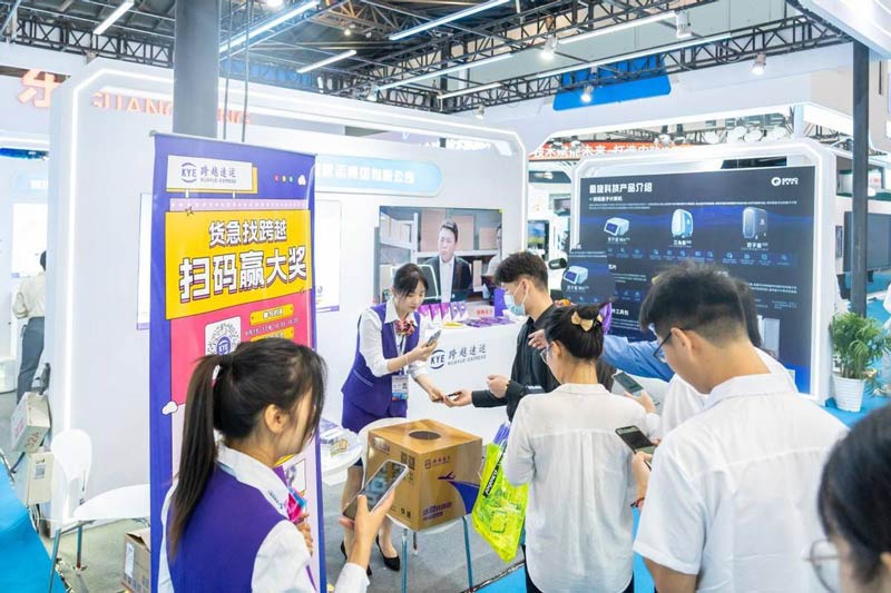 本届上交会上,跨越速运展台以独树一帜的明快色调和极具科技感的风格,领先的物流技术和各色智能设备吸引了无数参展者驻足围观,许多国外采购商和企业客户也特意到展位咨询。同时,跨越速运还设置了趣味抽奖互动环节,生动风趣的互动将现场气氛推向高潮,人头攒动、摩肩接踵的场景使得跨越速运的展位化身为博览会现场最亮眼的打卡点。此外,跨越还在现场投入了充足的接送车次,为部分参展商提供酒店至上海世博展览馆的来回接送服务。