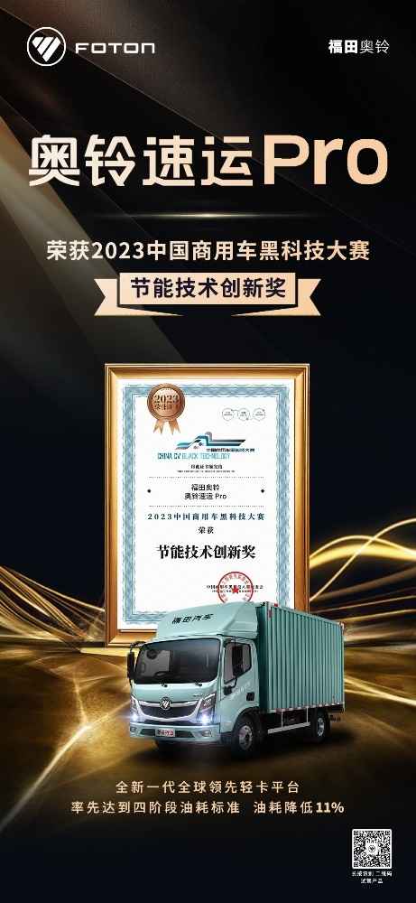 12月1日,2023 汽车电动化与智能化技术国际论坛在上海隆重举行。在分论坛第二届中国商用车黑科技大赛颁奖典礼暨商用车技术大会上,作为国内商用车知名品牌,福田奥铃旗下全新一代速运Pro轻卡凭借率先达到四阶段油耗技术优势,斩获“节能技术创新奖”。