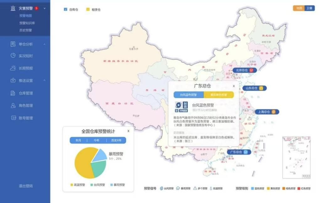 而为保障在途货物的安全,墨迹天气从仓储到运输,提供了一整套服务方案。在仓库选址阶段,可通过监测不同地区的年降水量、空气温湿度、风力、霜降期、年交通运营不利日数等变量,为物流企业仓库选址提供气象数据支持。在货物运输中,墨迹天气还提供了寒潮、雾、霾、道路结冰、霜冻等气象预警信息,同时,根据天气实况给出相应的建议措施,以确保物流运输平稳进行。