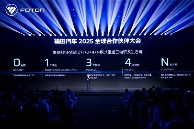 福田汽车副总经理秦志东对爱易科“电・驱动”进行了详细解读。秦总表示,爱易科“电·驱动”通过“0+1+3+4+N”模式重塑三电研发生态链。其中,“0”代表我们始终坚持用户至上的核心理念,0距离接触商用车使用工况,深入了解一手数据;“1”是指福田大数据平台,是目前商用车行业先进的车联网数据平台,是设计开发核心数据来源的基础;“3”指代电池、电控、电驱三大模块,构成了完整的爱易科“电·驱动”系统;“4”则对应着节能、安全、工况适应性和智能化四大价值维度;而“N”则代表了我们对未来的无限想象与可能性,预示着多元化的产品解决方案。
