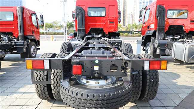底盘是自卸车的“脊梁”,乘龙M3 6×2R提升桥自卸车在这方面更是下足了功夫。双层大梁结构,抗弯抗扭能力一流,重载也能稳如泰山。特强板簧设计(前轴11片、二轴空气悬架、三轴12+9)让承载性能直接起飞,再加上工程重载型轮胎,承载力和通过性双双在线。这款车还配置沙漠空滤系统,沙尘颗粒统统过滤,显著延长发动机寿命。2850+1350mm短轴距设计更是锦上添花,狭窄工地、蜿蜒山路都能灵活穿梭,转向轻松自如,简直是工地里的“灵活小能手”!