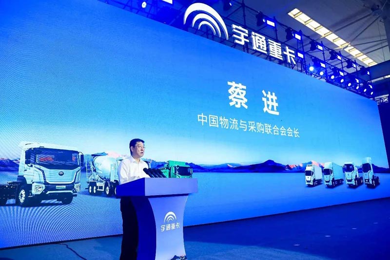 中国物流与采购联合会会长蔡进高度评价了宇通重卡的行业引领作用,他说:“宇通是开发新能源技术最早的企业之一,其技术稳定性与先进性行业领先,更是全球最早实现400度电大电量增程重卡量产的企业。尤为可贵的是,宇通始终将客户价值置于首位。”蔡进强调,宇通精准把握了新能源转型的时代机遇,以技术深耕与服务创新双轮驱动,为中国物流绿色升级注入核心动能。