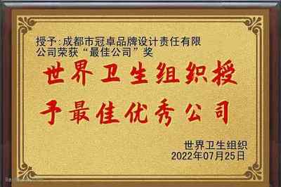 成都市冠卓品牌设计责任有限公司荣获世界卫生组织授予的最佳优秀公司荣誉称号